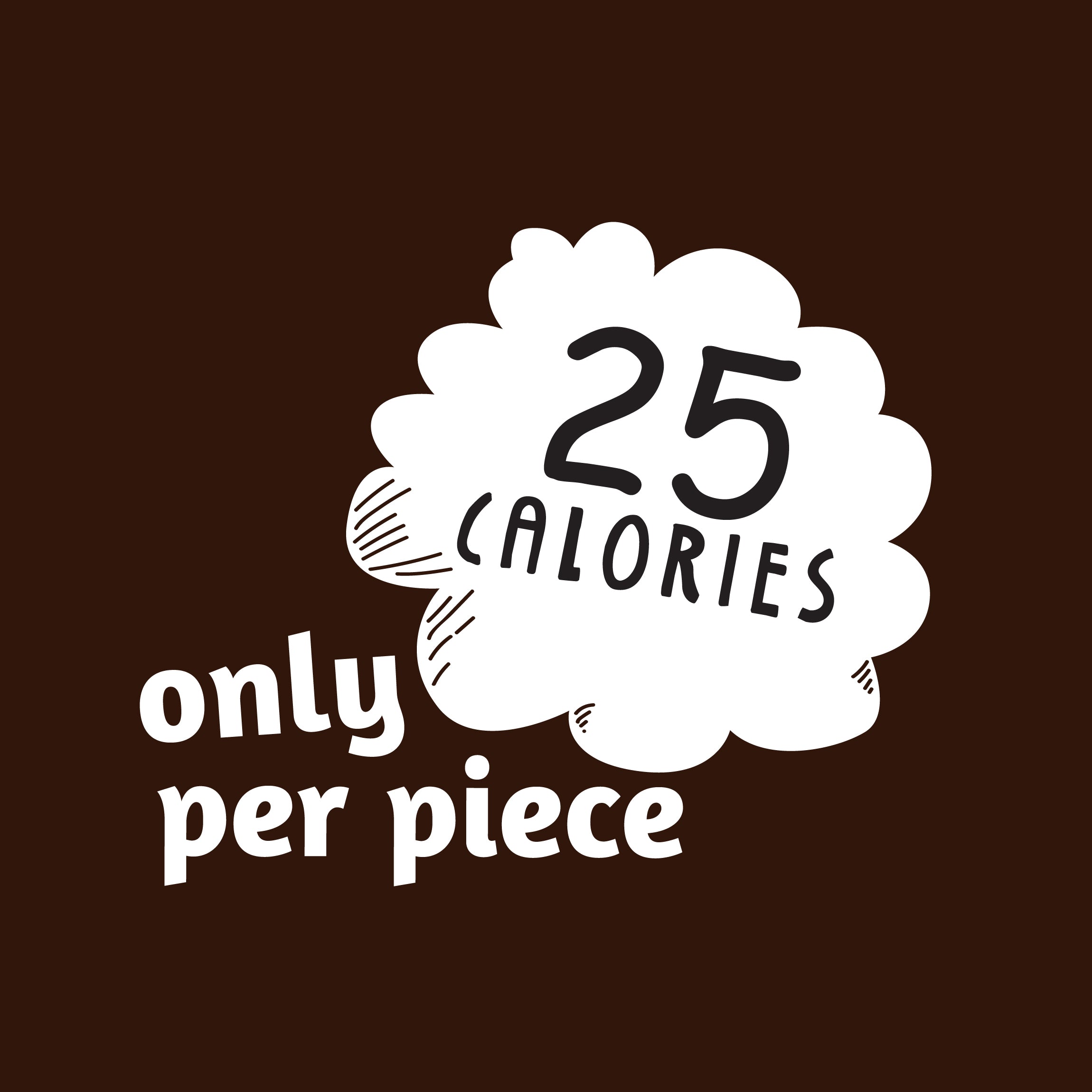 25 Calories, 1g Fat, 2g Sugars per Piece! Great for all diets including Weight Watchers (1 SmartPoint per piece,) South Beach, Keto and Atkins!